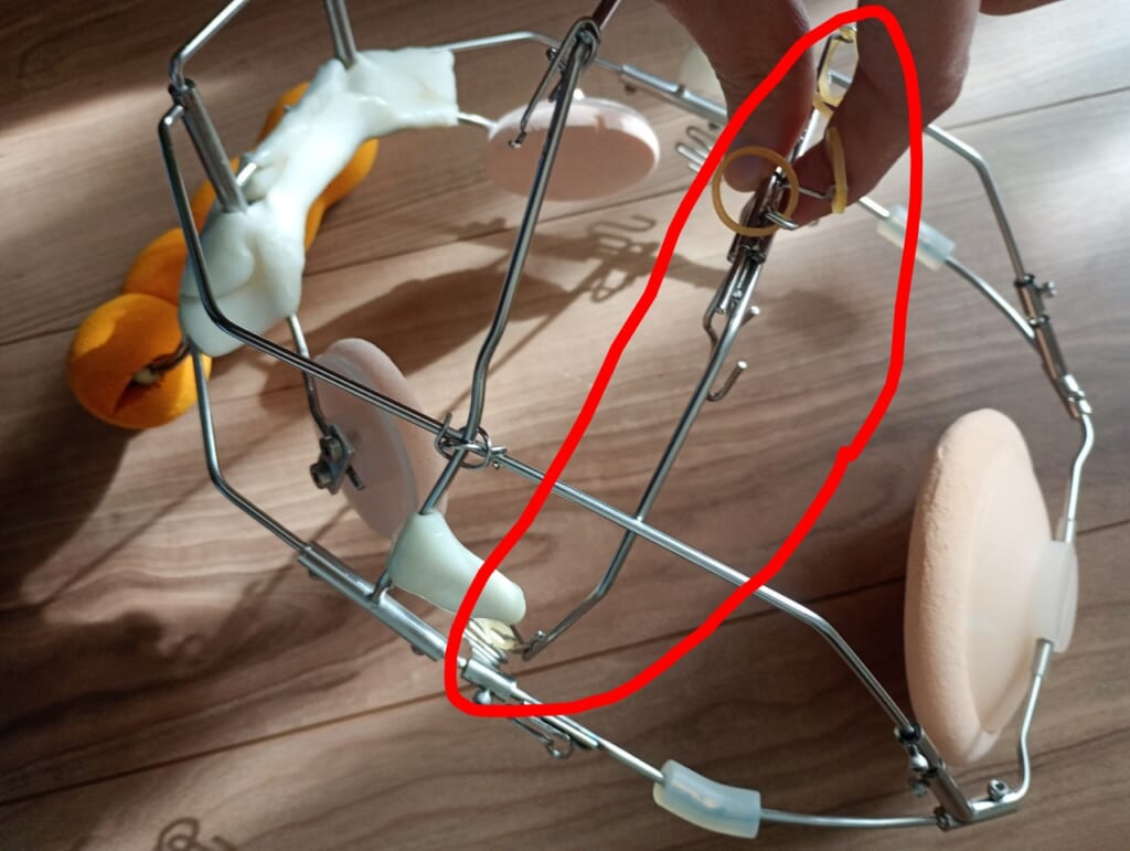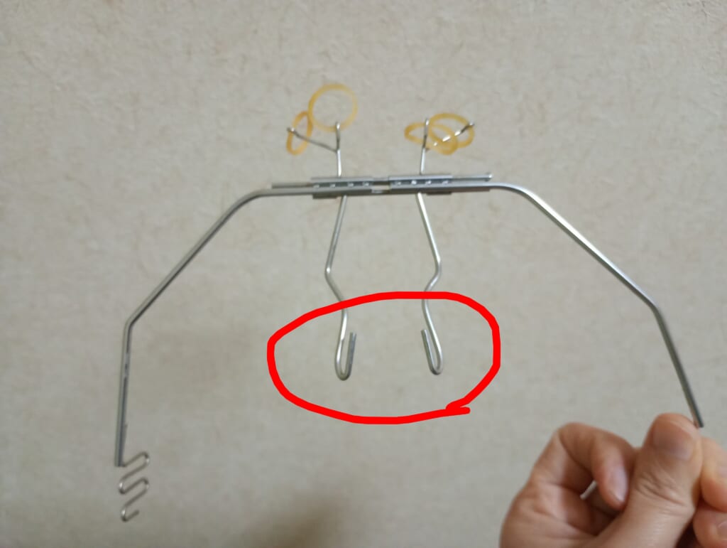 赤丸のところを上顎に固定した器具の穴に差し込むことで、上顎の器具で固定されます。